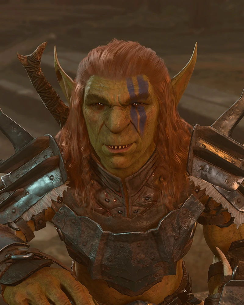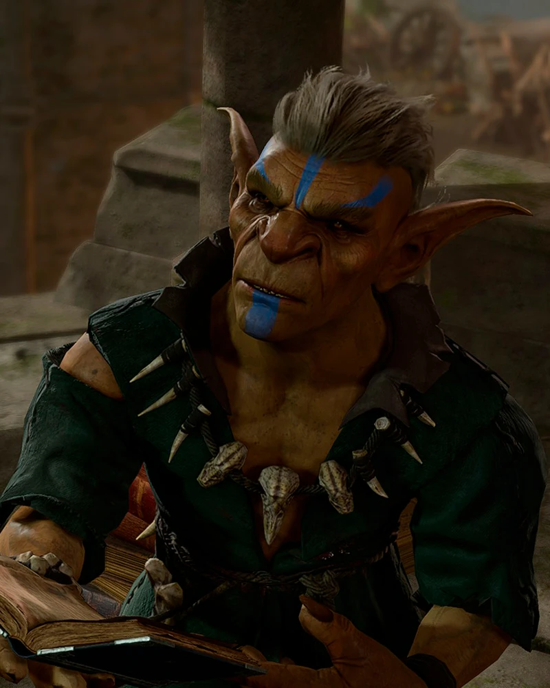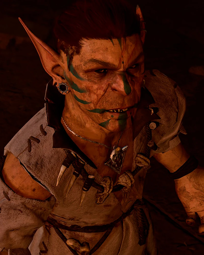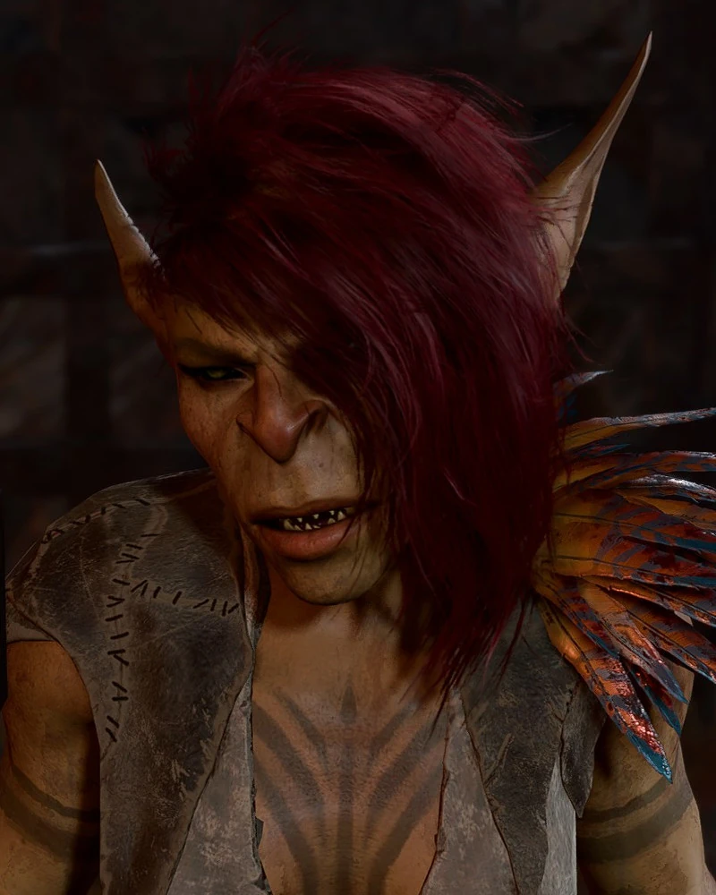 Посередине лагеря, хвалится своим новым «голубком», которым окажется пленённый Воло. Гоблинша заставляет его развлекать подвыпившую публику пением. При разговоре с ним начнётся квест Спасти Воло. |