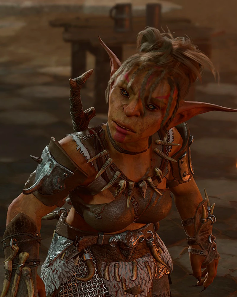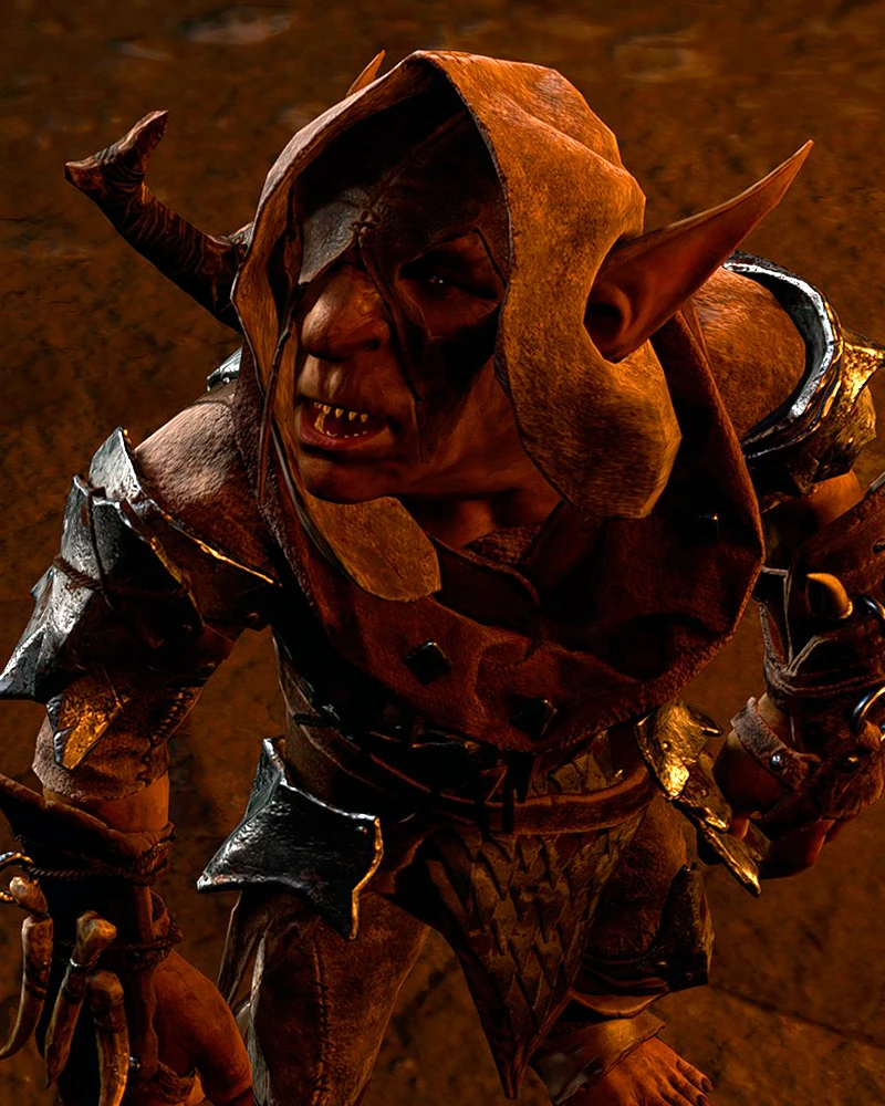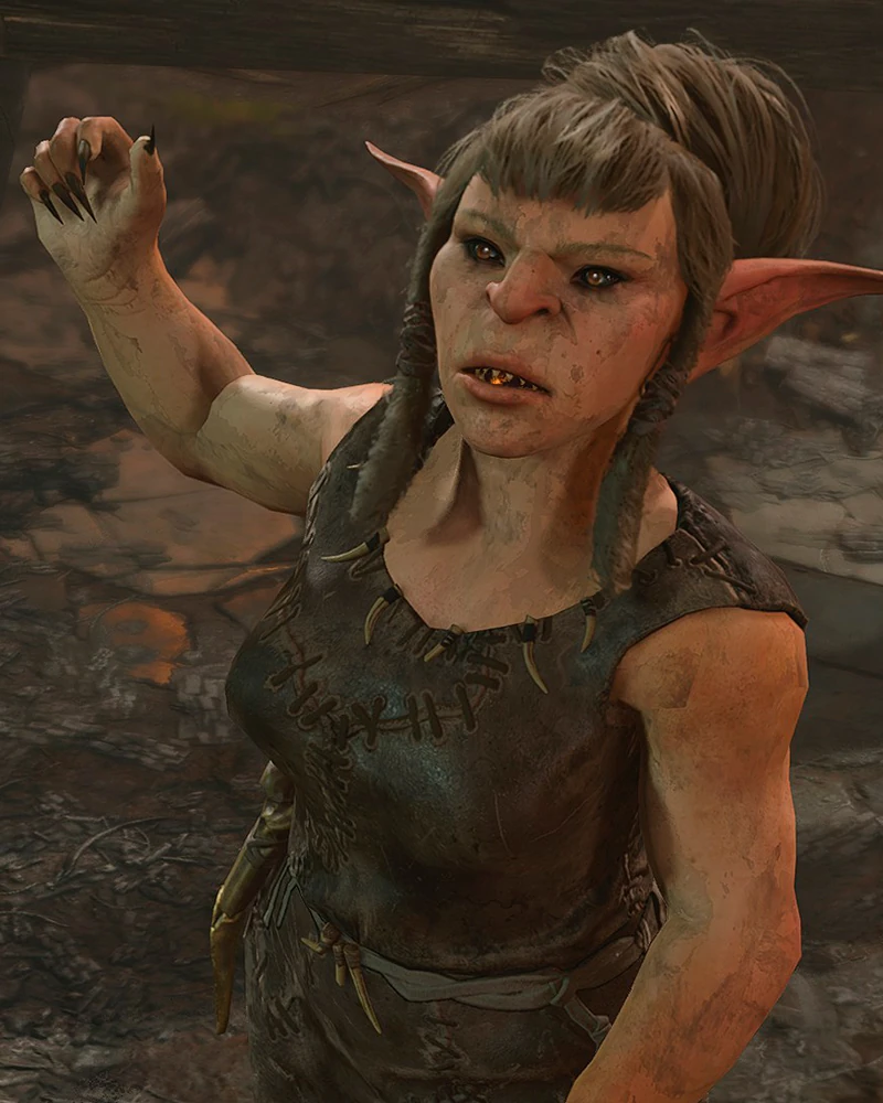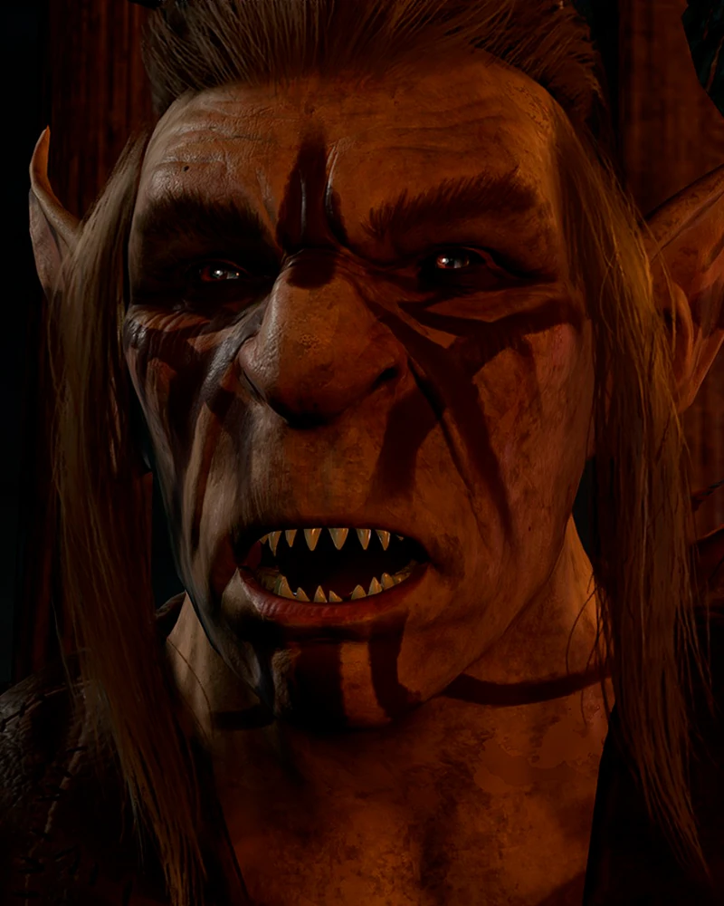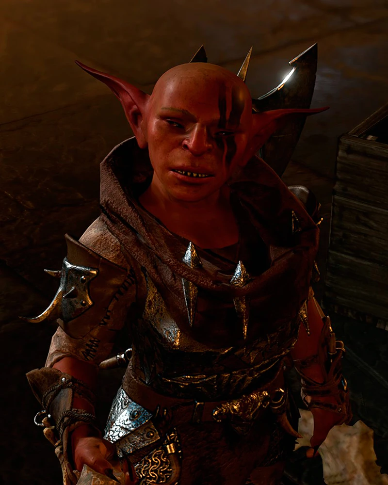 Посередине лагеря, хвалится своим новым «голубком», которым окажется пленённый Воло. Гоблинша заставляет его развлекать подвыпившую публику пением. При разговоре с ним начнётся квест Спасти Воло. |