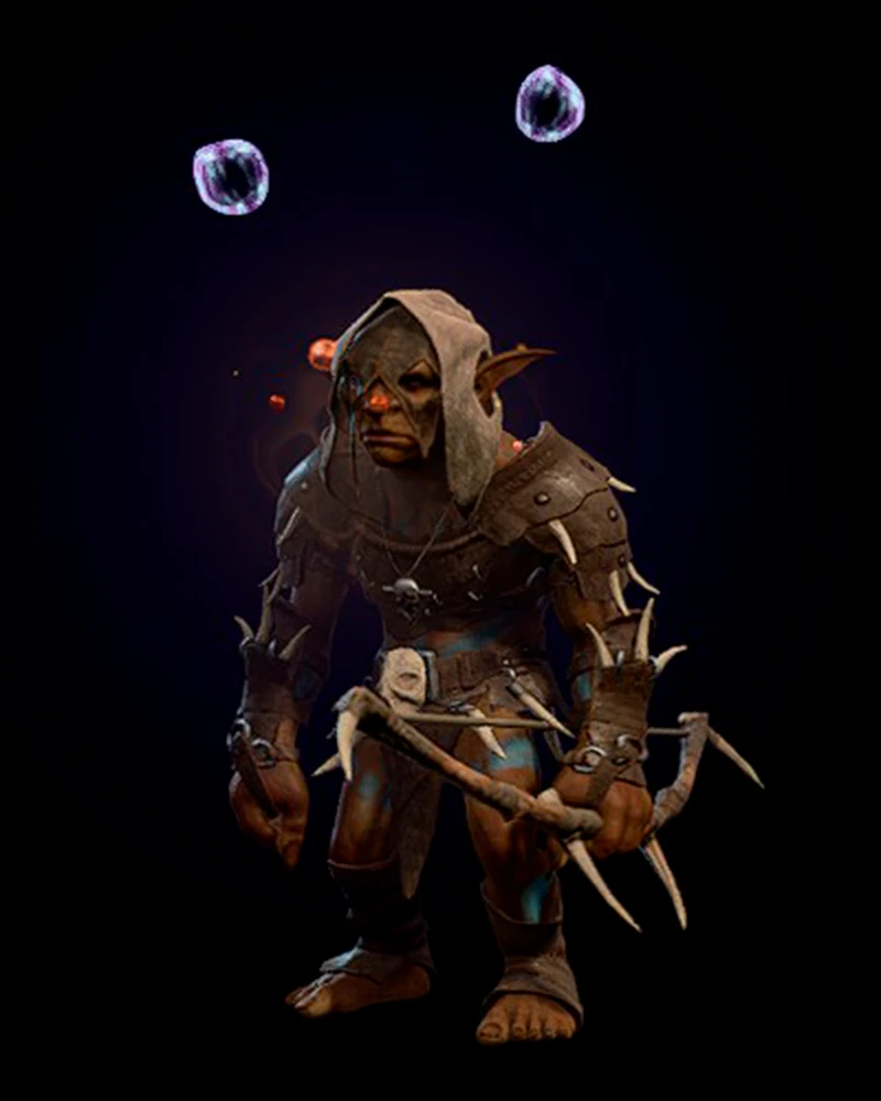 В восточной части святилища, в пыточной. Он пытает пленного Лиама по приказу Минтары с целью получить информацию о местонахождении Рощи друидов. Поговорив с ним, можно убедить гоблина прекратить пытки или же попробовать допросить пленника самому. |
