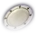 Простая глиняная тарелка, раскрашенная несколькими мазками золотистой краски.