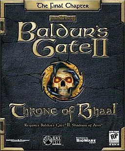 Baldur's Gate II: Throne of Bhaal is the expansion pack for the computer role-playing game Baldur's Gate II: Shadows of Amn by BioWare, and was the final chapter in the Baldur's Gate series until the release of Baldur's Gate III. It adds a multi-level dungeon called Watcher's Keep to the Baldur's Gate II game, as well as extending the main plot line to its conclusion. There are also several new powerful weapons, higher level caps, a further refined Infinity Engine (graphics) and new class-related feats and magical skills. A novelization of the game exists, written by Drew Karpyshyn.