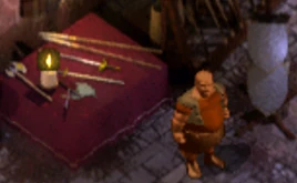 It might be worth a visit to this merchant early on in the game (given enough coin), as he sells the Robe of the Good Archmagi as well as +2 missiles, depending on if those items are matching up with the party's needs. However, the merchant won't engage in any business unless the genie and animal trouble are resolved, and the protagonist has a moderate Charisma score.