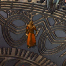 Larzis one of the three aspiring Cowled Wizards who will become an apprentice to Gorion's Ward as part of the Mage Stronghold quest during the Baldur's Gate II: Shadows of Amn campaign.
