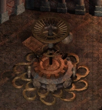 The Token Machine can be found at the center of this octagonal shaped room. It is a splendid contraption, like something produced by the crafters of Gond.