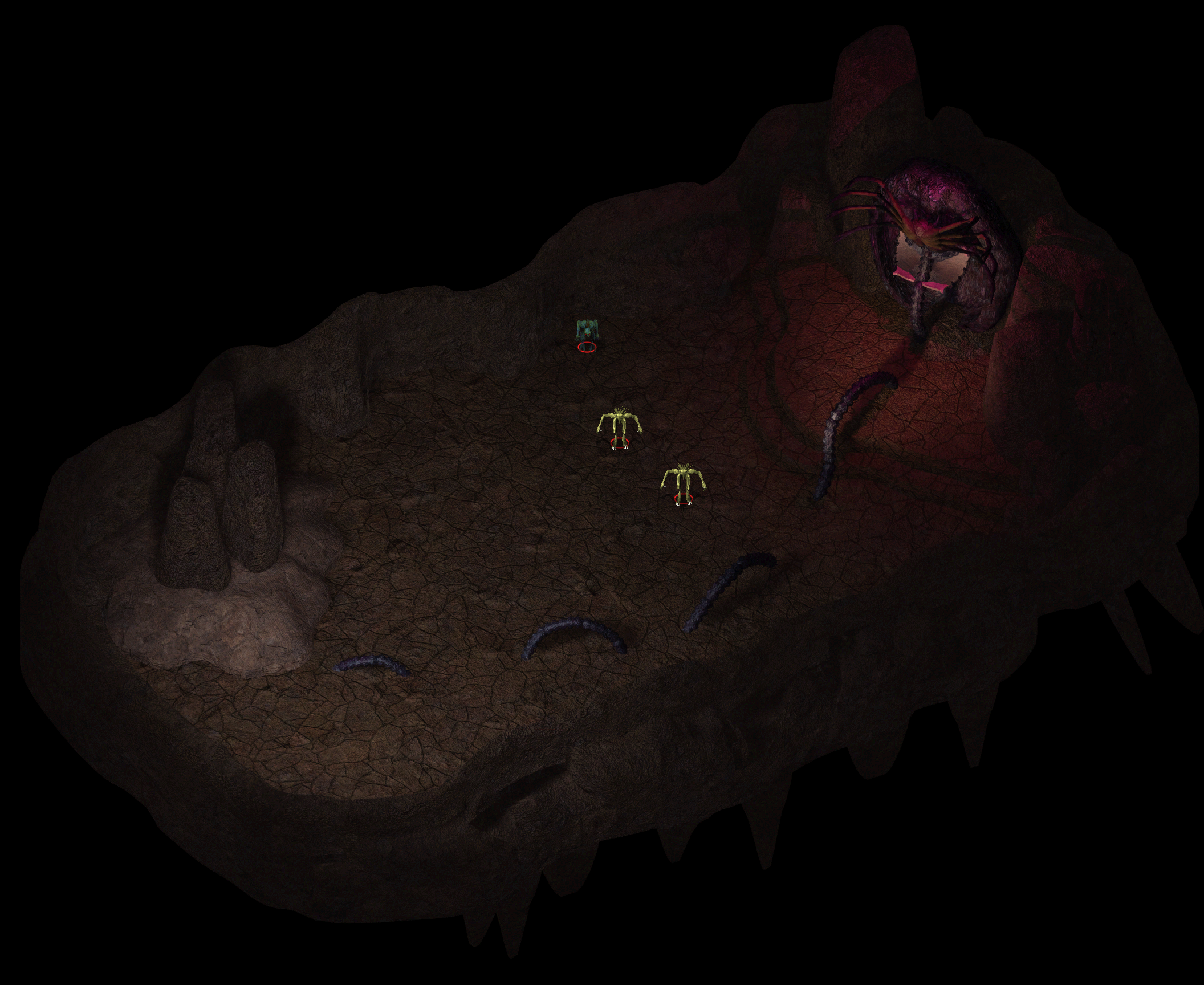 The party is transported to this area and lands in the southern portion of a huge cave. The fog of war extends further than can be penetrated with Infravision.