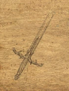 | “ | Blades of this type were long used by Sharran priests during the sacrificial rites of "Feast of the Moon" ceremonies. Legends say that, when she passed on, the remains of this sword's wielder were mummified and the blade was placed within her chest as a symbol of power. In the first stage of a long forgotten ritual, she was to have been exhumed in a season, born again in some new form. Unfortunately, cult wars killed the few that knew of her existence; her tomb became a prison where she was forgotten, and there she developed a rage that bordered on insanity. Her grave was eventually found, but it was deserted and gave no indication of her whereabouts. Some venture to say that her anger was so concentrated that she became one with the very blade of her weapon. Regardless, after hundreds of years surrounded by constant hate, the sword harvested a power of its own. It is now exceedingly deadly in combat. | ” |