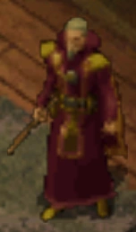 Yago is a mage located in the Low Lantern who mortally cursed the daughter of Brielbara. He will turn hostile unless you choose the apology dialogue when you first encounter him, regardless of whether you have or haven't started Brielbara's quest. The apology dialogue will also prevent hostilities if you have started the quest but decide not to fight him.